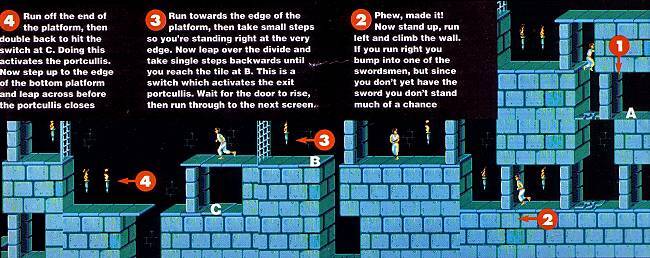 Prince of Persia is an enormously entertaining game. Even when you tire of the puzzles, you can still enjoy the quality animation. Each of the screens is equipped with many testing obstacles, and when you believe you know a level inside out it's still possible to accidentally discover a pathway to more potions and another swordsman.